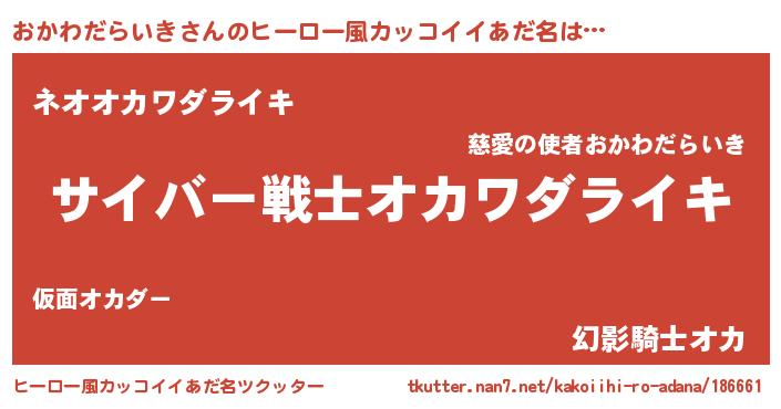 | 女子向けラノベタイトル風あだ名 | 『おかわだらいきアンティーク』 |