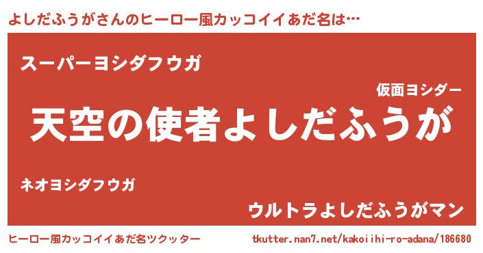 | 男性向けラノベタイトル風あだ名 | 『ノーゲーム・ノーヨシダフウガ』 |