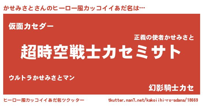 | 女子向けラノベタイトル風あだ名 | 『かせみさとなんてお断りですっ。』 |