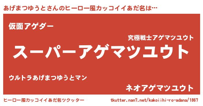 | 胡散臭い通販商品みたいなあだ名 | 『必ず成功する霊験あらたかなお札…その名も「あげまつゆうと」』 |