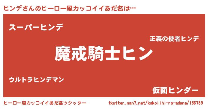 | ポケモン風あだ名 | 『ヒンゴンZ』『ヒヒンデ』『ヒーンイ』 |