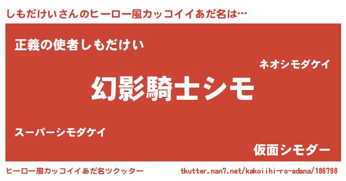 | 意味不明あだ名 | 『とにかく怪しいしもだけい』 |