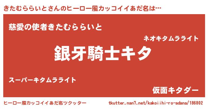 | ヘコむあだ名 | 『きた太郎』『きたむららいと(笑)』 |