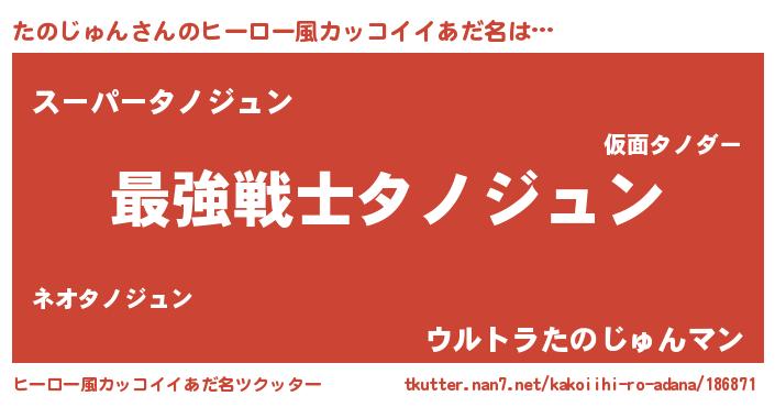 | 男性向けラノベタイトル風あだ名 | 『たのじゅん~年齢イコール彼女いない歴の魔法使い~』 |