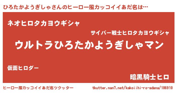 | ファンタジー風あだ名 | 『エターナルヒロタカヨウギシャー』 |