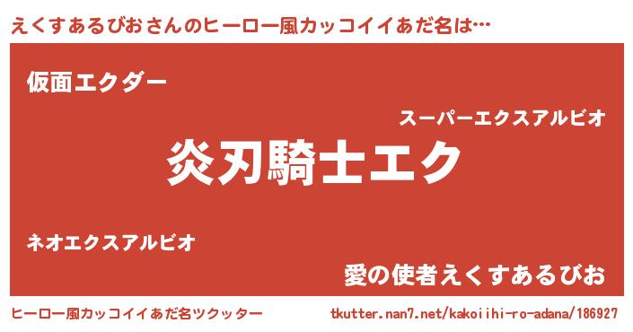 | 男性向けラノベタイトル風あだ名 | 『えくすあるびおの嫁は女の子じゃないと思った?』 |