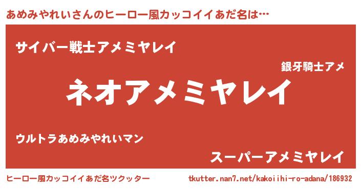 | 欧米人風あだ名 | 『ダルビッシュあめみやれい』 |