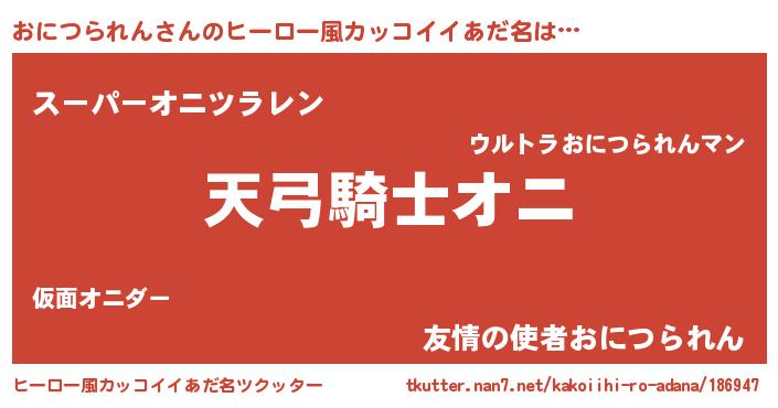 | 男性向けラノベタイトル風あだ名 | 『おにつられんの嫁は女の子じゃないと思った?』 |