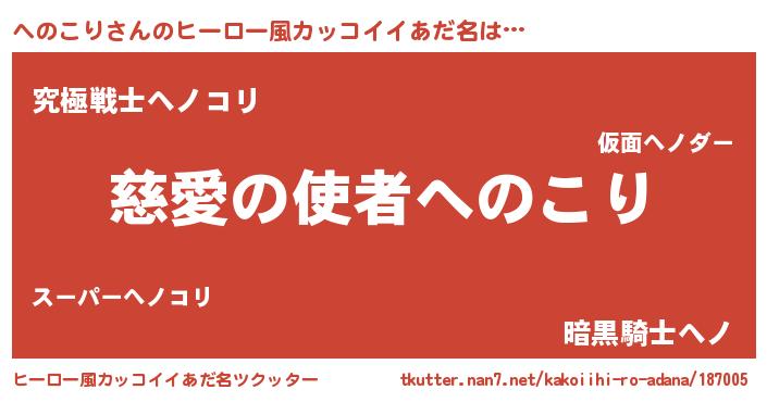 | 男性向けラノベタイトル風あだ名 | 『ノーゲーム・ノーヘノコリ』 |