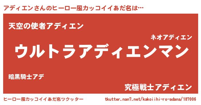 | 伝説のあだ名 | 『秘められし忍者アディエン』 |