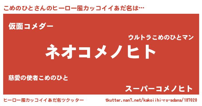 | ヘコむあだ名 | 『こめのひと(遠い目)』『こめもー』 |