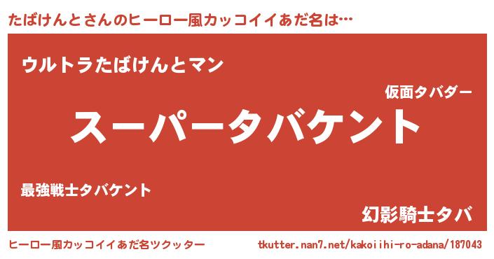 | 胡散臭い通販商品みたいなあだ名 | 『億万長者になれる霊験あらたかなお札…その名も「たばけんと」』 |