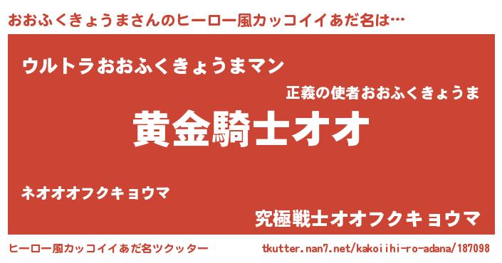 | ポケモン風あだ名 | 『ヒオオフクキョウマ』『オオゴンZ』 |