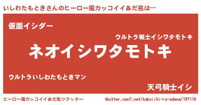| ヘコむあだ名 | 『いしわたもとき(笑)』『いしっぺ』 |