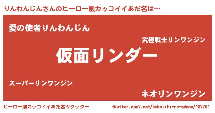 | 男性向けラノベタイトル風あだ名 | 『魔弾の王とりんわんじん』 |