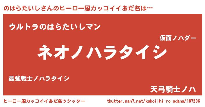 | 男性向けラノベタイトル風あだ名 | 『ノハラタイシスレイヤー』 |