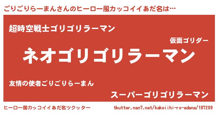 | 胡散臭い通販商品みたいなあだ名 | 『来世でも幸せになれる水素水…その名も「ごりごりらーまん」』 |