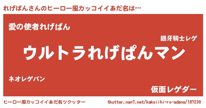 | 意味不明あだ名 | 『れげぱんフォーエバー』 |