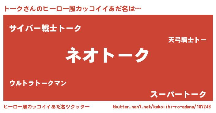 | 胡散臭い通販商品みたいなあだ名 | 『来世でも幸せになれる健康食品…その名も「トーク」』 |