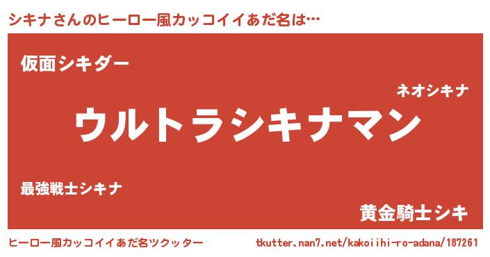 | 欧米人風あだ名 | 『シキナクリステル』『ダレノガレシキナ』 |