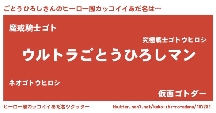 | 男性向けラノベタイトル風あだ名 | 『うちの娘の為ならば、俺はもしかしたらごとうひろしも倒せるかもしれない。』 |