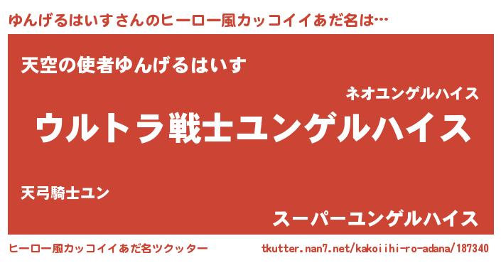 | ヘコむあだ名 | 『ゆんにー』『ゆんげるはいす(震え声)』 |