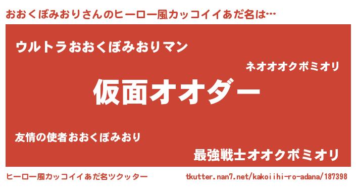 | 男性向けラノベタイトル風あだ名 | 『この素晴らしい世界におおくぼみおりを!』 |