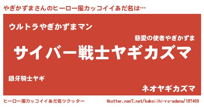 | 意味不明あだ名 | 『自称やぎかずま』『永久保存やぎかずま』 |
