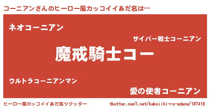 | 意味不明あだ名 | 『とにかく怪しいコーニアン』 |