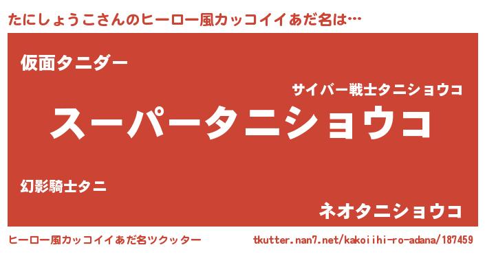 | 男性向けラノベタイトル風あだ名 | 『たにしょうこ~年齢イコール彼女いない歴の魔法使い~』 |