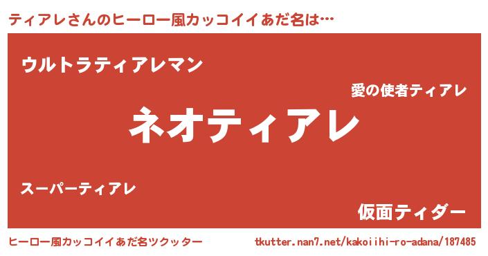 | ヘコむあだ名 | 『ティアレ(笑)』『なまこ酢』 |