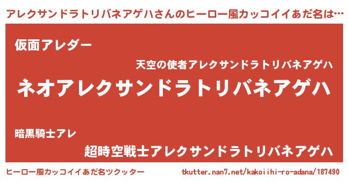 欧米人風あだ名 | 『ダルビッシュアレクサンドラトリバネアゲハ』 |