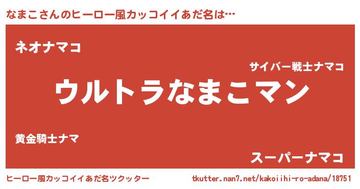 | 2回繰り返すあだ名 | 『ななまま』『ぐだぐだ』『なまなま』 |