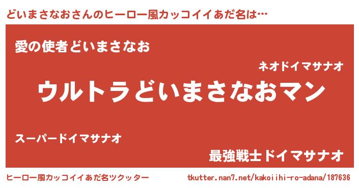 | 男性向けラノベタイトル風あだ名 | 『うちの娘の為ならば、俺はもしかしたらどいまさなおも倒せるかもしれない。』 |