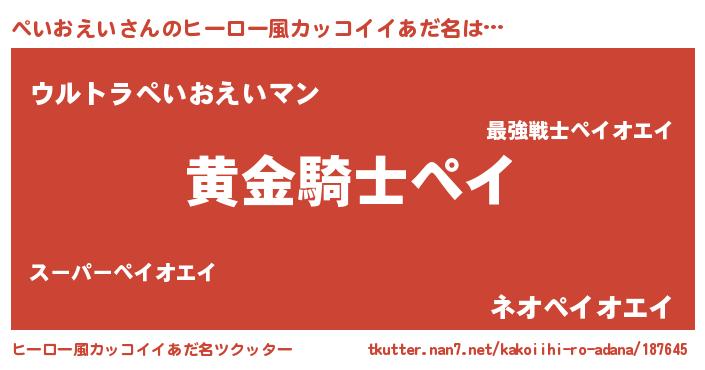 | 男性向けラノベタイトル風あだ名 | 『ダンジョンにぺいおえいを求めるのは間違っているだろうか』 |