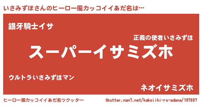 | 男性向けラノベタイトル風あだ名 | 『いさみずほ~年齢イコール彼女いない歴の魔法使い~』 |
