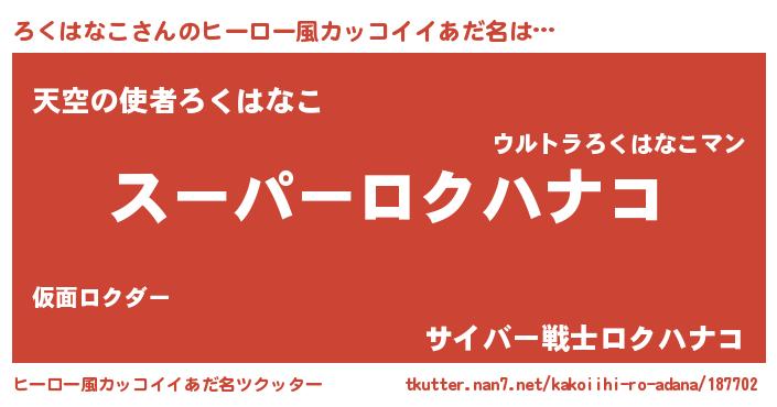 | 女子向けラノベタイトル風あだ名 | 『ろくはなこ姫と円卓の騎士』 |