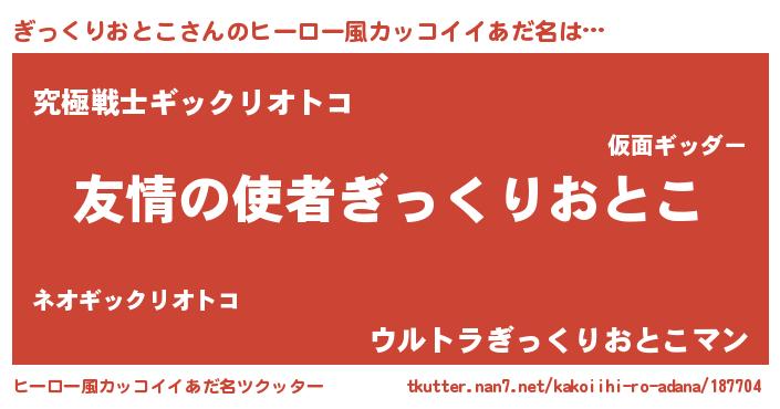 | 男性向けラノベタイトル風あだ名 | 『おまえをオタクにしてやるから、俺をぎっくりおとこにしてくれ! 』 |
