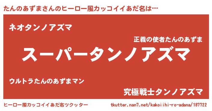 | 男性向けラノベタイトル風あだ名 | 『タンノアズマアートオンライン』 |