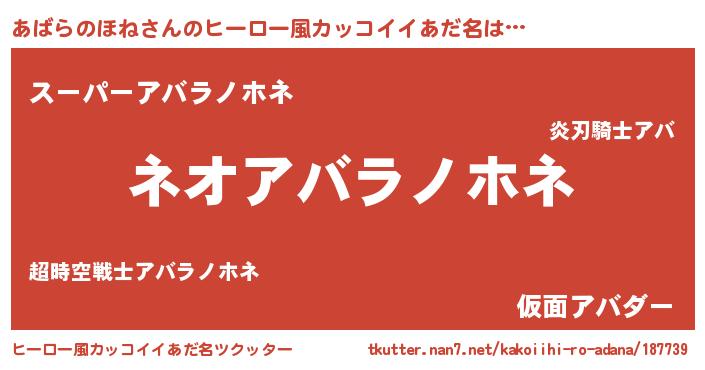 | ヘコむあだ名 | 『あばらのほね(遠い目)』『あばにー』 |