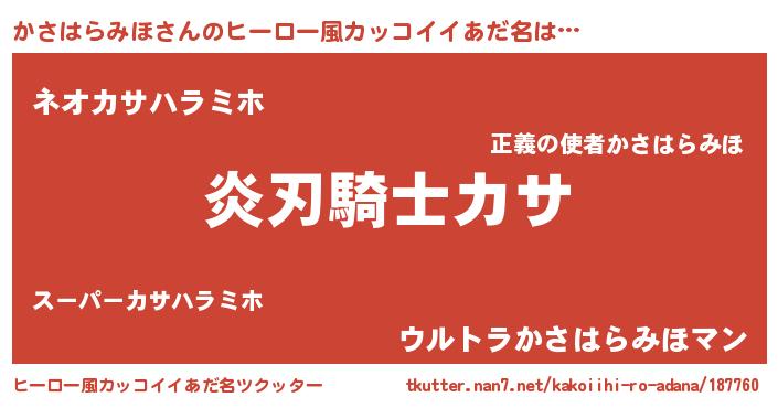 | 胡散臭い通販商品みたいなあだ名 | 『全米が絶賛したサプリメント…その名も「かさはらみほ」』 |