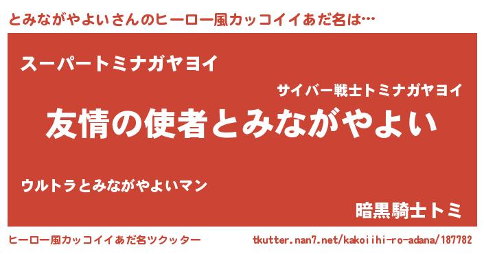 | 男性向けラノベタイトル風あだ名 | 『おまえをオタクにしてやるから、俺をとみながやよいにしてくれ! 』 |