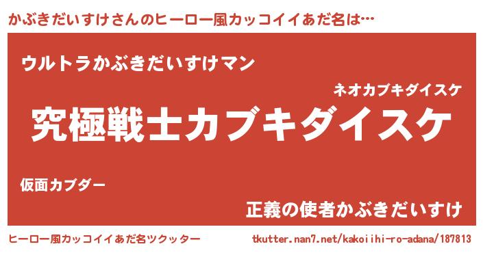 | 男性向けラノベタイトル風あだ名 | 『Re:かぶきだいすけから始める異世界生活』 |