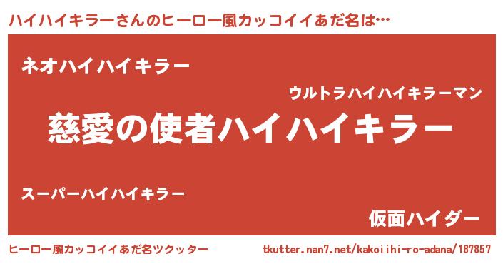 | 男性向けラノベタイトル風あだ名 | 『ノーゲーム・ノーハイハイキラー』 |