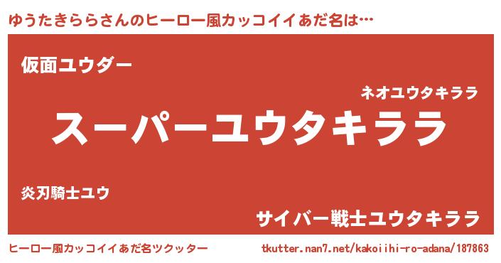 | 男性向けラノベタイトル風あだ名 | 『ゆうたきららに滅ぼされるだけの簡単なお仕事です』 |