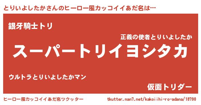 | 胡散臭い通販商品みたいなあだ名 | 『億万長者になれるブレスレット…その名も「とりいよしたか」』 |