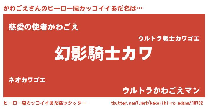 | 男性向けラノベタイトル風あだ名 | 『かわごえに滅ぼされるだけの簡単なお仕事です』 |
