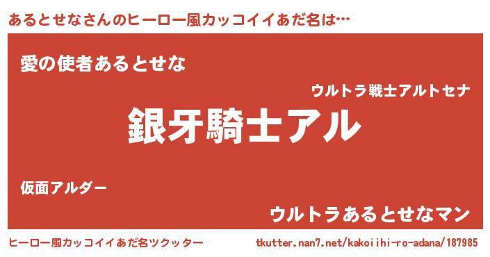 | 意味不明あだ名 | 『とにかく怪しいあるとせな』 |