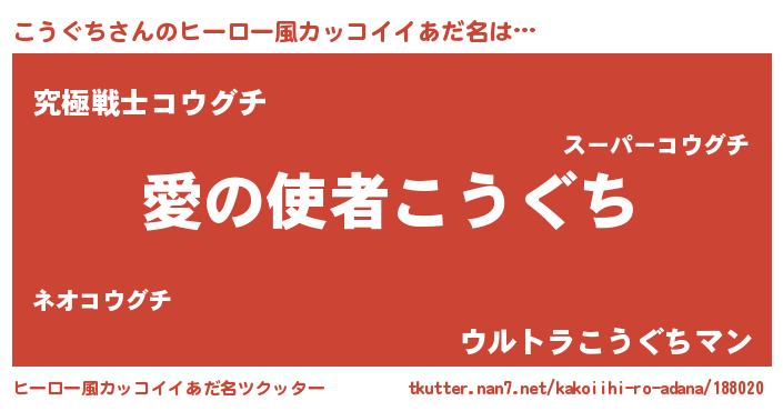 | 男性向けラノベタイトル風あだ名 | 『こうぐちに滅ぼされるだけの簡単なお仕事です』 |
