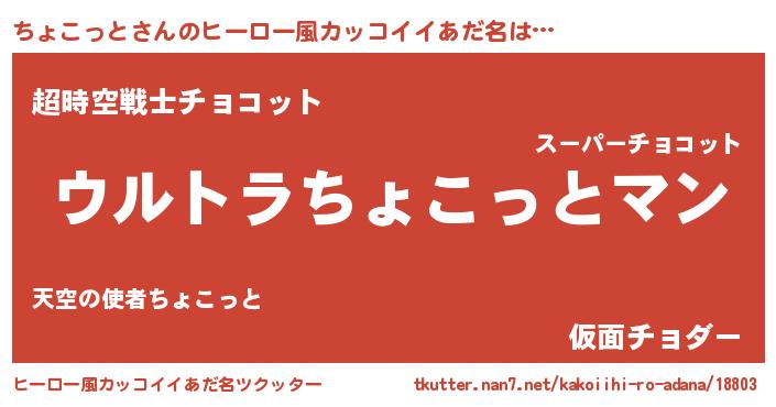 | 男性向けラノベタイトル風あだ名 | 『ちょこっとに滅ぼされるだけの簡単なお仕事です』 |